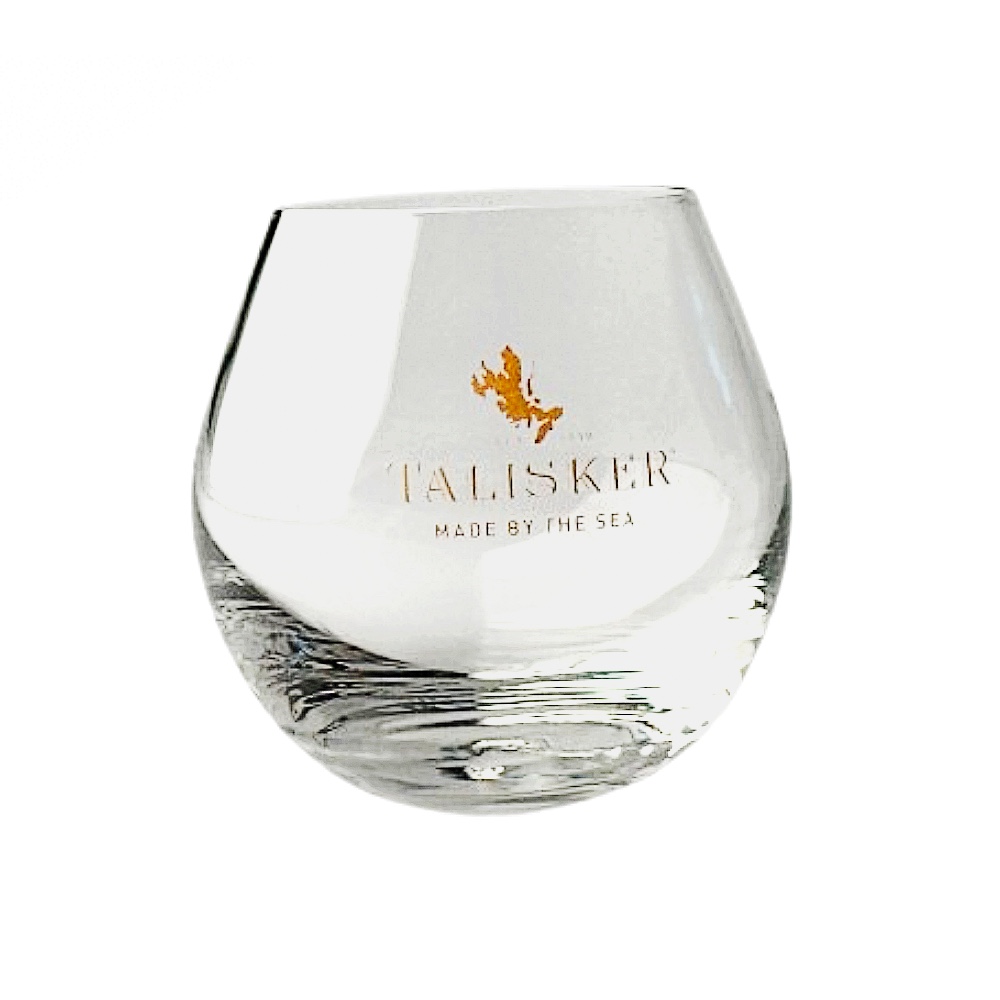 Das Talisker Rocking Glas mit Logo liegt wunderbar rund in der Hand. Der Genuss daraus mit einem Talisker Whisky setzt dazu Akzente.