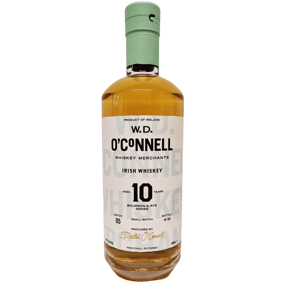 Die fünfte Veröffentlichung der Bourbon & Rye-Serie des irischen Merchant W.D. O’Connell ist Teil einer interessanten und außergewöhnlichen Liste irischer von Grain-Whiskys. Die Reise dieses Whiskys begann in der Cooley Distillery, wo er destilliert und später für mindestens 10 Jahre lang gereift wurde. Dabei kam als Grain auch Roggen zum Einsatz um diesem Small Batch zusätzliche Charakteristik zu bieten, die Würze eines Rye. Dann wird er noch ergänzt mit Vanille-, Karamell- und Honignoten, die durch die Reifung in ehemaligen Bourbon-Fass-Grain-Whisky entstanden.